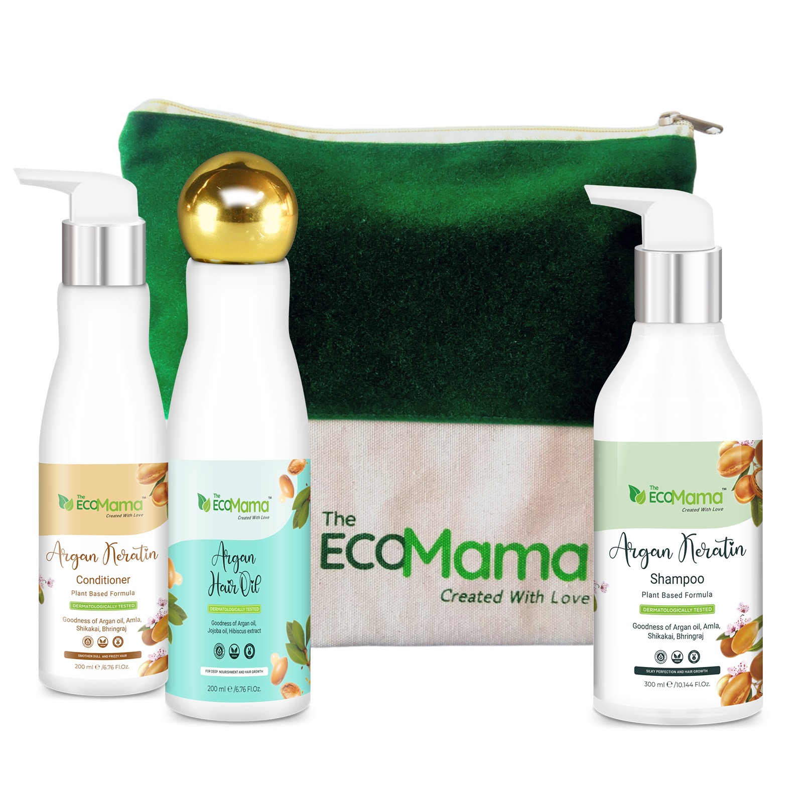 ARGAN KERATIN SHAMPOO DESCRIPTION:- The Eco Mama hair care formulation is based on providing the best natural care for hair We sourced argan in pure form that moisturises hair and scalp and protects hair From everyday damage by reducing breakage and split ends and keeping your scalp healthy. Keratin in our formulation works by smoothing down the cells that overlap To form your hair strands. The layers of cells absorb the keratin resulting in hair that looks Full and glossy .makes curly hair less frizzy, easier to style and straighter in appearance. Shikakai is used since ancient times in hair care it helps to prevent grey hair Shikakai is a cooling agent and thus helps soothe your scalp to promote regrowth. Bhringraj activates the hair follicles, which enhance hair growth. Amla Provides vitamins A, C, and D and minerals to hair and fights fungal infections.